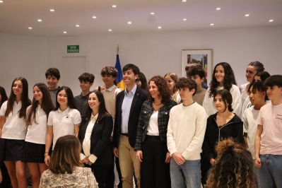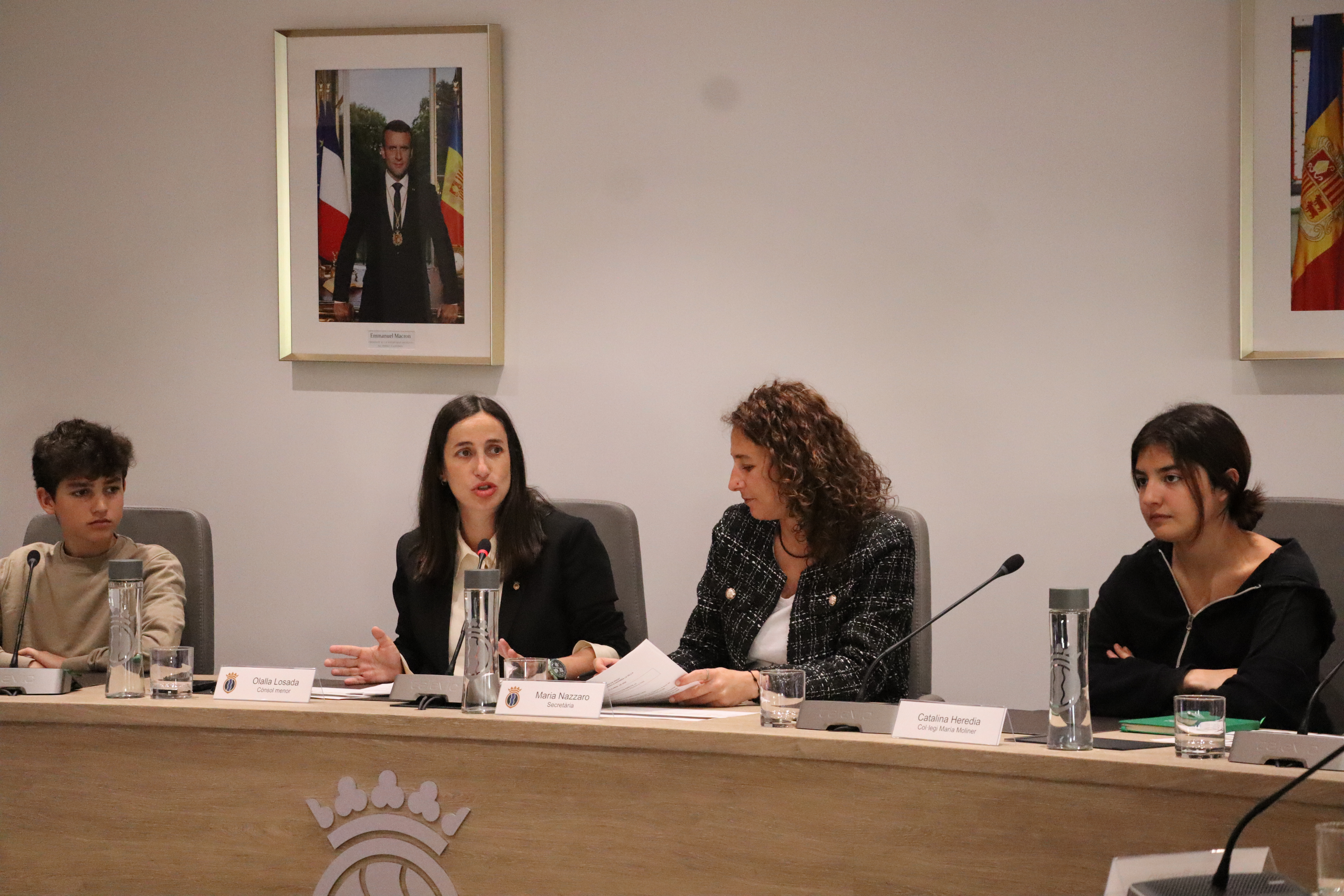 La cònsol menor d'Andorra la Vella, Olalla Losada, la consellera de Social, Joventut i Espai Ciutadà, Maria Nazzaro, i els consellers joves.