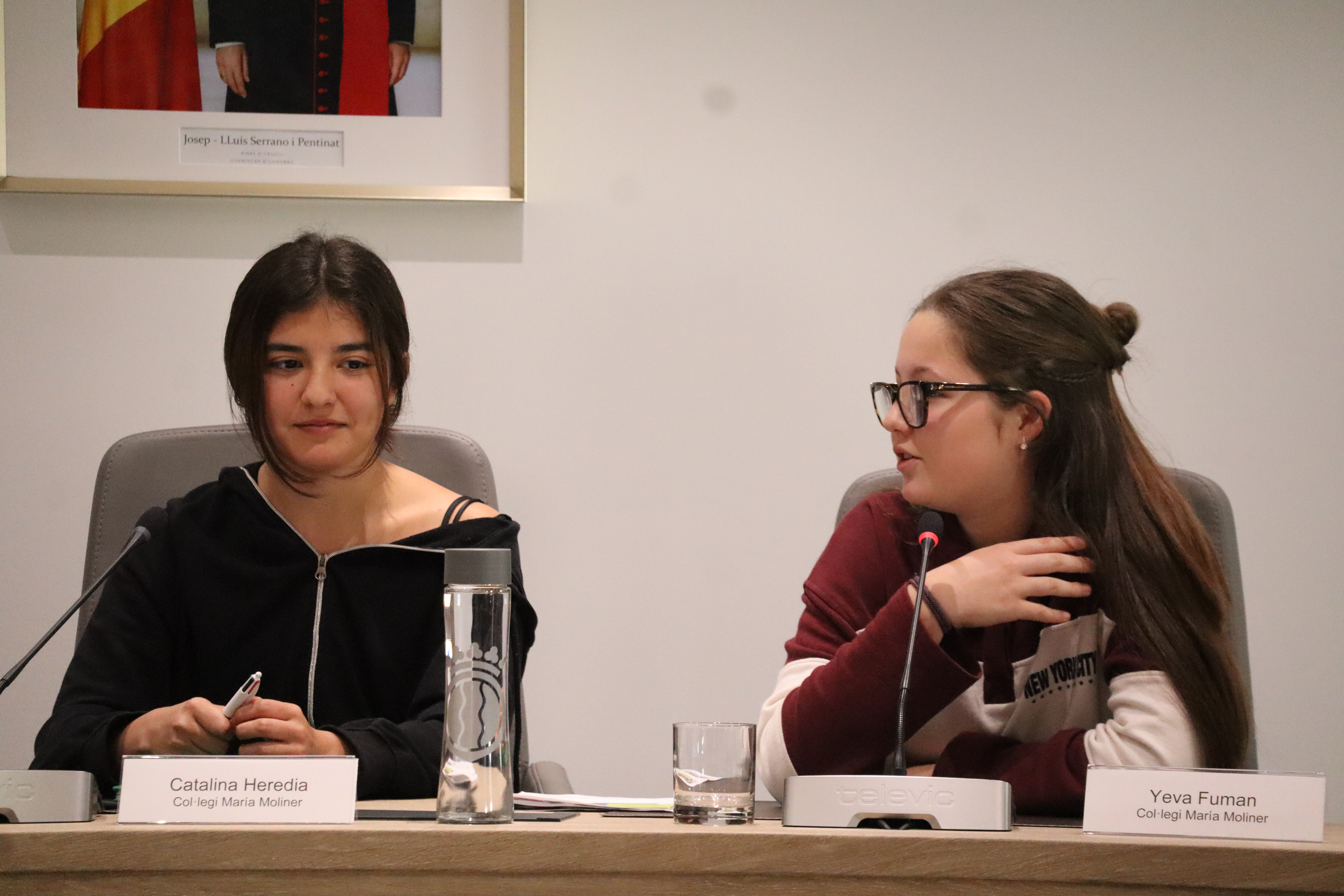 Les conselleres joves Catalina Heredia i Yeva Fuman del Col·legi Maria Moliner.