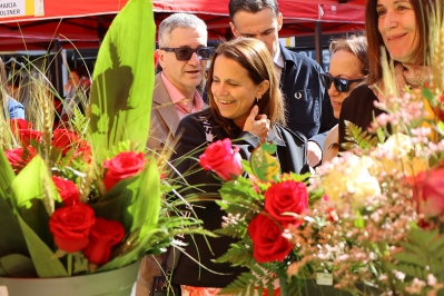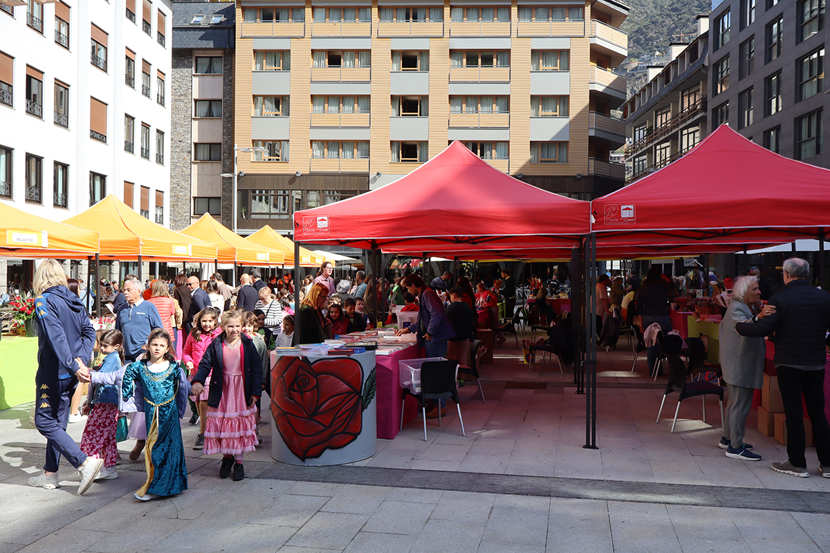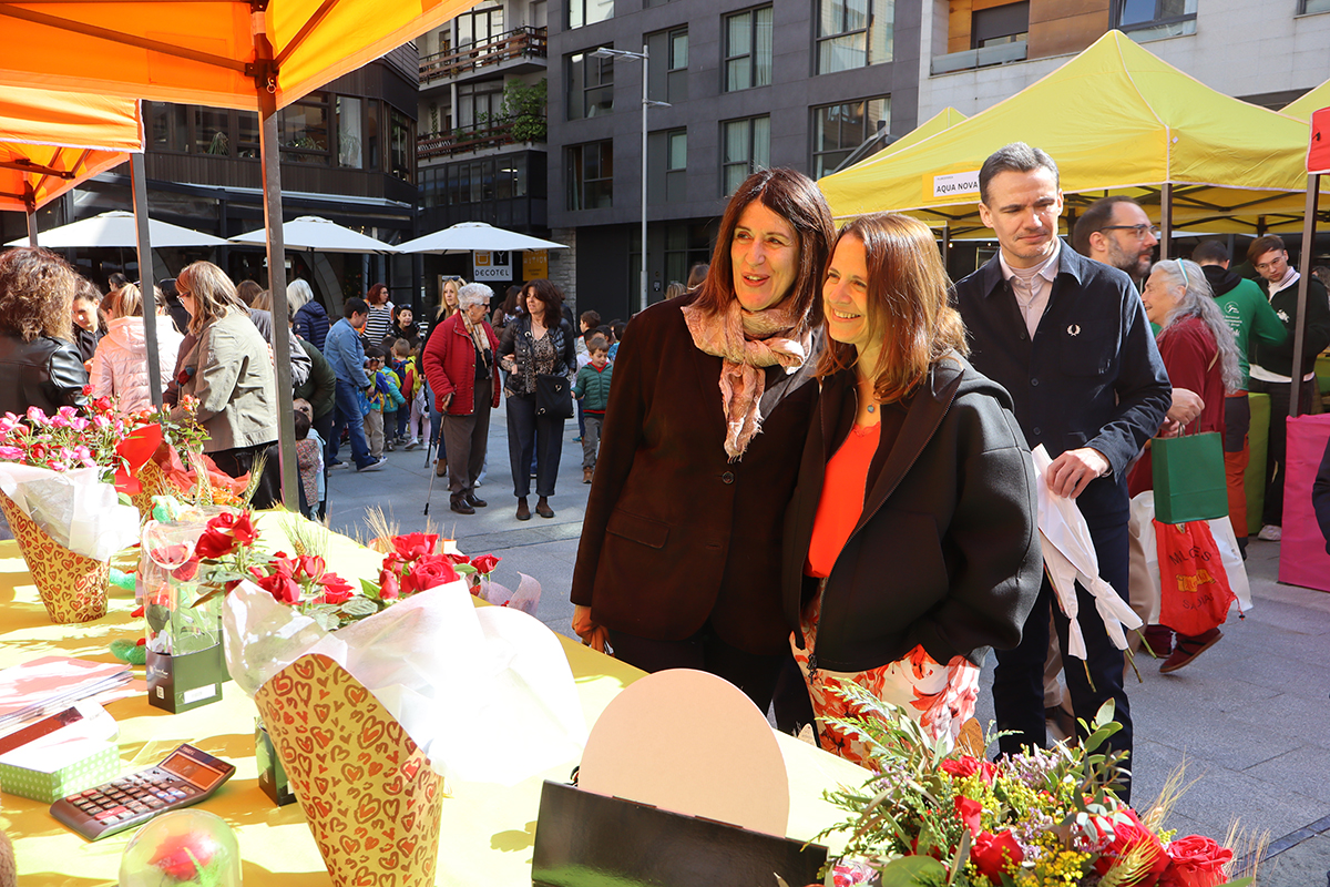 La cònsol major d’Escaldes-Engordany, Rosa Gili, ha visitat aquest dijous al matí, acompanyada de l’equip comunal, les parades de Sant Jordi de la plaça Coprínceps en el marc de l’inici de la diada.